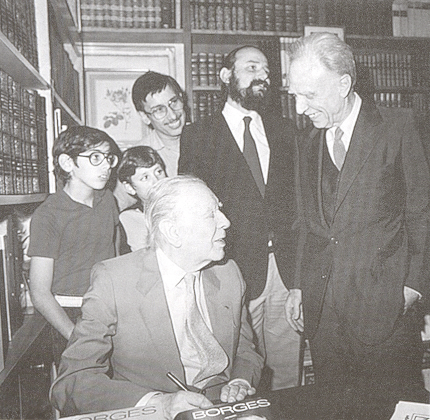 “—A mis 5 años de edad una señora me enseñaba inglés. Más que eso, me explicaba el mundo. Esa señora un día me leyó uno de los dos poemas que Borges escribió en inglés [fechados en 1934 y con el título Two English Poems se leen en El otro, el mismo (Emecé, Buenos Aires, 1964), pero con el título “Prose poems for I.J.” se publicaron por primera vez en la sección Otros poemas del libro Poemas (1922-1943) (Losada, Buenos Aires, 1943), “Primera compilación de la obra poética” de Borges]. Ese poema algo dejó en mí... Cuando tenía 12, un amigo de mi padre me presentó a Borges... No sé, Borges me transmitió una cosa muy especial.