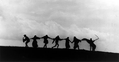 | El caballero Antonius Block (Max von Sydow) y la Muerte (Bengt Ekerot) |